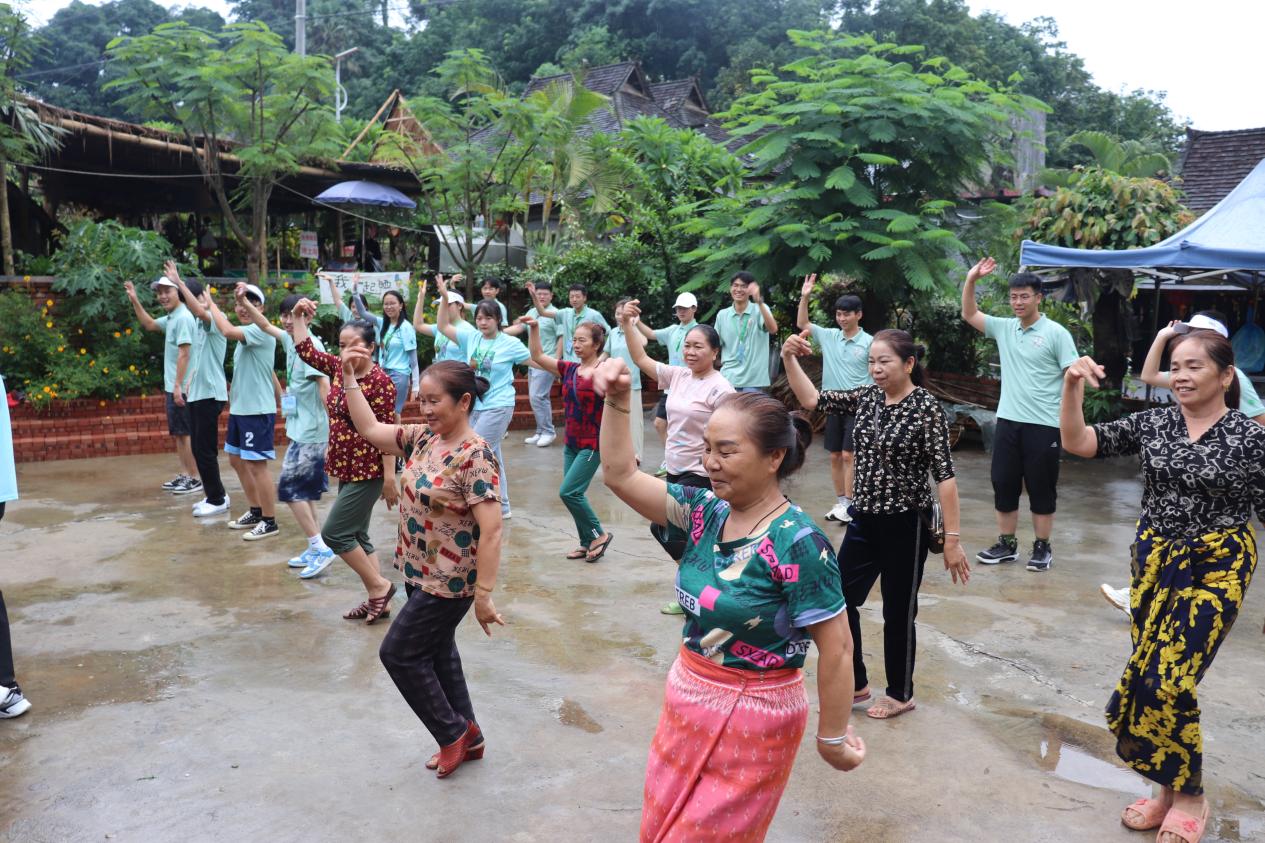 作为千年古寨,曼远村文化底蕴深厚,非遗传承丰富,实践团队向村民歌舞队学习跳舞,感受当地民俗文化。(来源:来利国际旗舰厅/文:刘鸣奇/图:李童/审核:谭泽飞)