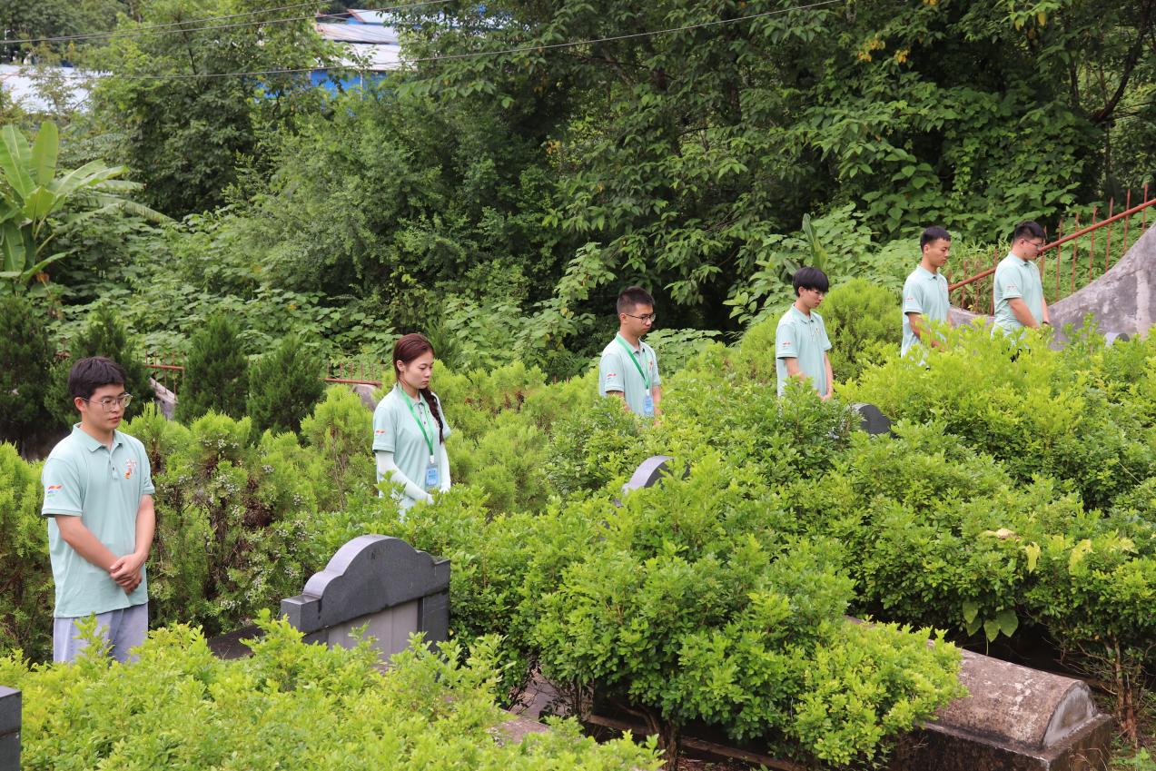 实践队成员整齐列队,肃立默哀,依次向革命烈士鞠躬致敬,表达对英烈的无限哀思。