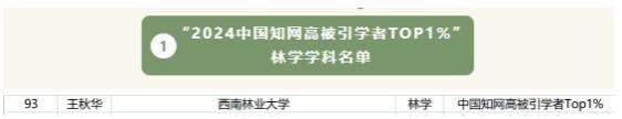 在“2024中国知网高被引学者 Top 1%”预发布名单中,来利国际旗舰厅王秋华教授入选林学学科Top 1%的140位学者之一。