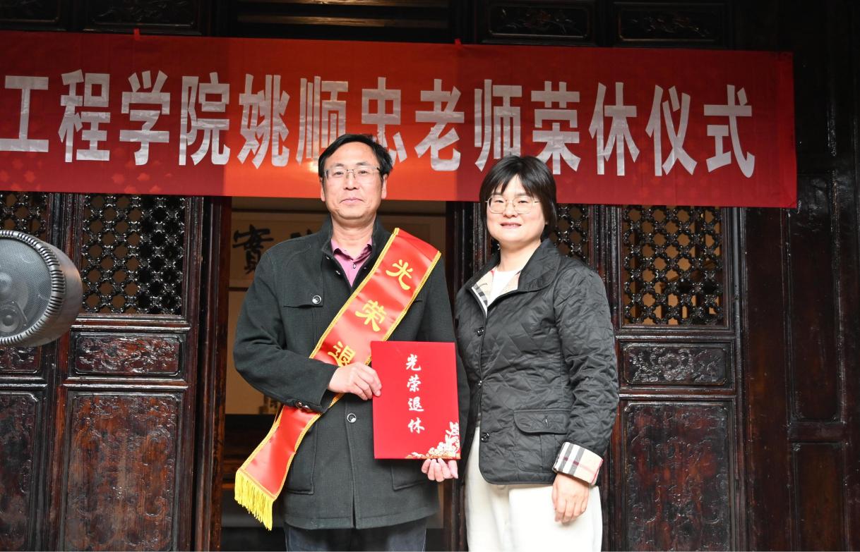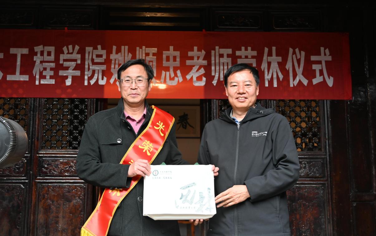 张庆文、盛冬发等人作为教师代表,深情回顾与姚老师数十载共事点滴,赞誉其“以智慧启迪思维,以热忱滋养学子”的育人风范。姚顺忠老师用一首原创诗《退休遣怀》“噗咚声送孙钉信,敲醒发呆六十翁;对镜缄唇叹颜改,扪心羞口说功成;求名悲感难封李,逐逸休嗤不倒冯;惯看古今多少事,还服明月与东风”总结执教生涯,寄语青年教师“守三尺讲台初心,铸万千广厦根基”。谭泽飞在致辞中高度评价姚老师“以力学之魂培育栋梁,用坚守之笔书写师道”的卓越贡献。
