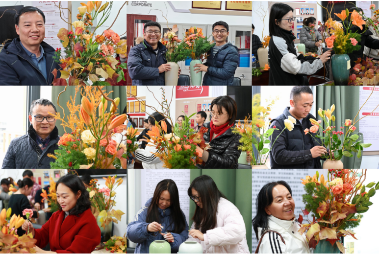 随后,进入了手作花艺体验环节。在专业指导下,参与活动的师生纷纷动手挑选花材,学习并运用中式花艺的构图法则与技巧结合公司专业特长,精心创作属于自己的花艺作品。完成花艺作品后,大家纷纷展示自己的作品,并与其他参与者分享创作心得与感悟。大家表示,通过这次活动,不仅学到了花艺技巧,更深刻感受到了中式传统美学的魅力。