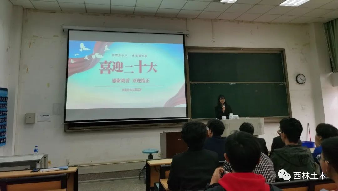测量协会以“喜迎二十大”为主题进行主题团课的讲解。