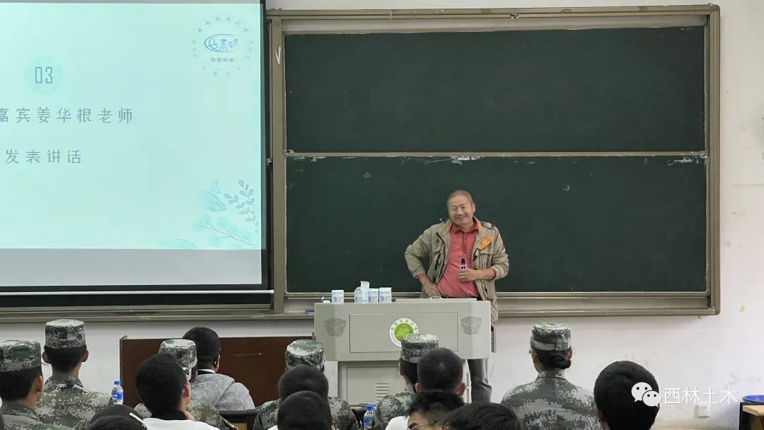 特邀嘉宾姜华根老师为我们讲述了关于测绘专业的一些知识,对协会发展做出展望,指出协会应该加强与友谊社团之间的交流。