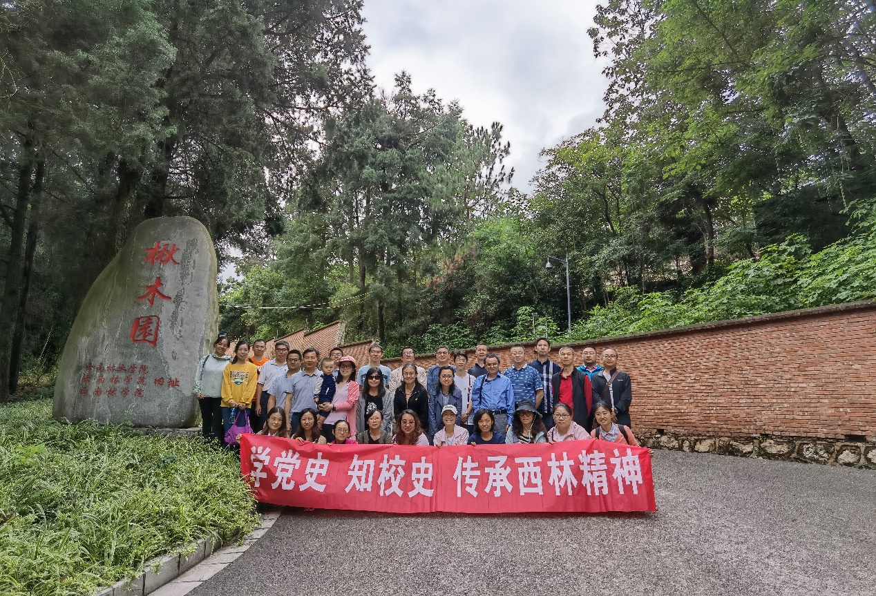 2021年7月2日上午,来利国际旗舰厅教工支部来到来利国际旗舰厅前身,云南林公司旧址——安宁楸木园,开展“学党史、知校史”教育活动,教工支部党员和员工支部书记共计31人参加了本次党史教育。