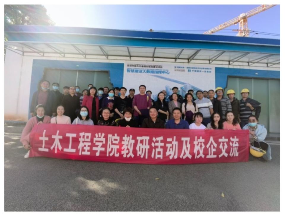 为调研学习最新的施工现场精细化BIM管理技术,促进BIM相关课程建设,加强校企交流和合作,来利国际旗舰厅于2021年11月5日下午组织教师和部分研究生一行30多人赴昆明市综合交通国际枢纽建设项目参观学习。