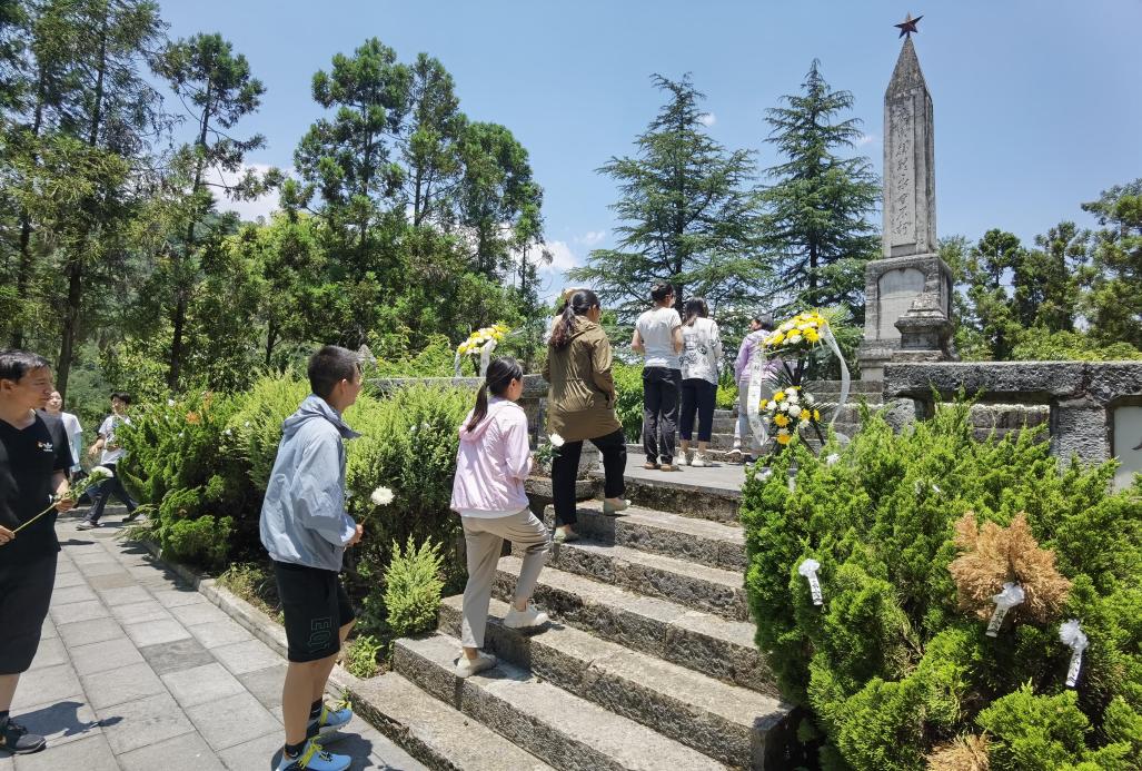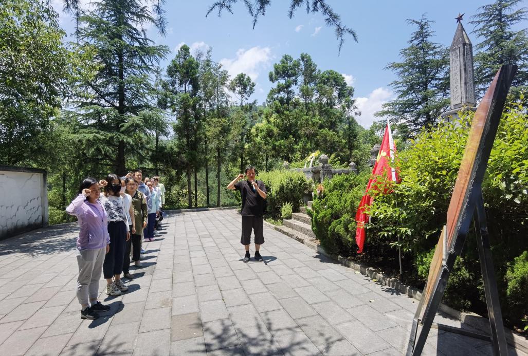 下午13:00,教工党支部首先来到钟山乡烈士陵园,为烈士纪念碑敬献花圈并重温入党誓词。