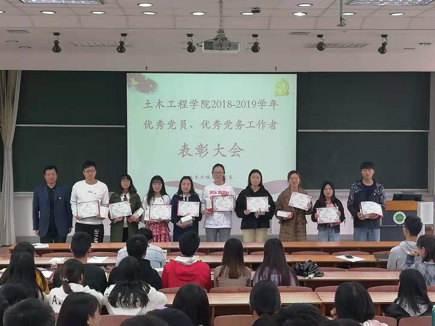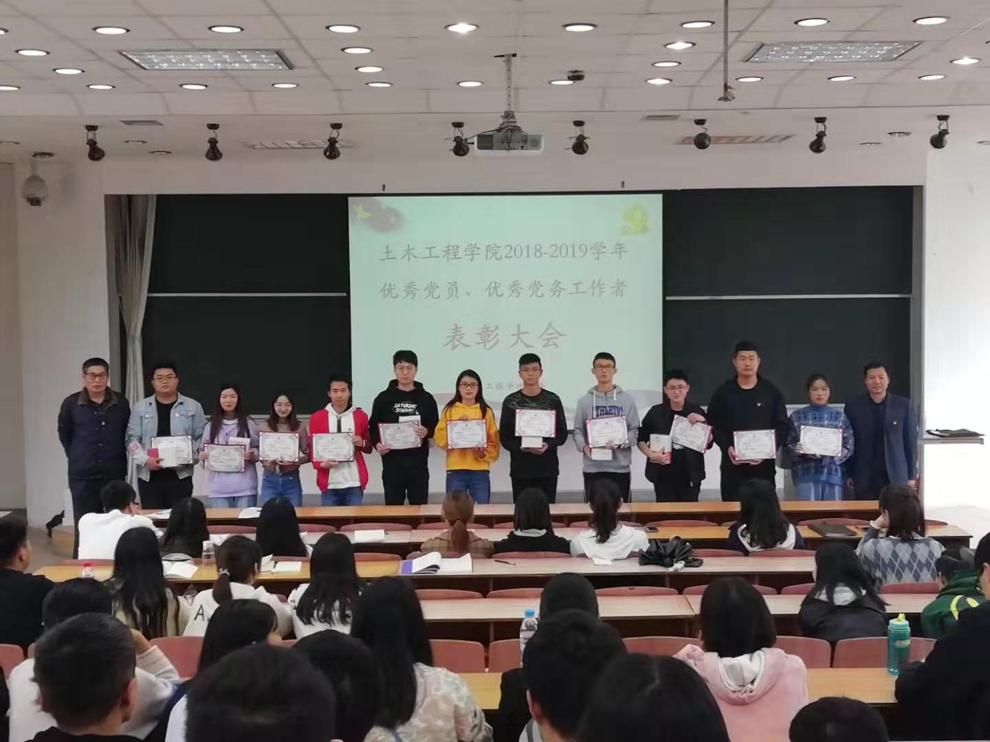 为深入推动“不忘初心、牢记使命”主题教育,引导和激励广大党员同志奋发进取,11月11日下午四点,土木工程公司党委在三教阶梯教室303举行来利国际旗舰厅2018-2019学年优秀共产党员、优秀党务工作者表彰大会,大会由党委书记谭泽飞同志主持,全体师生党员同志参加大会。