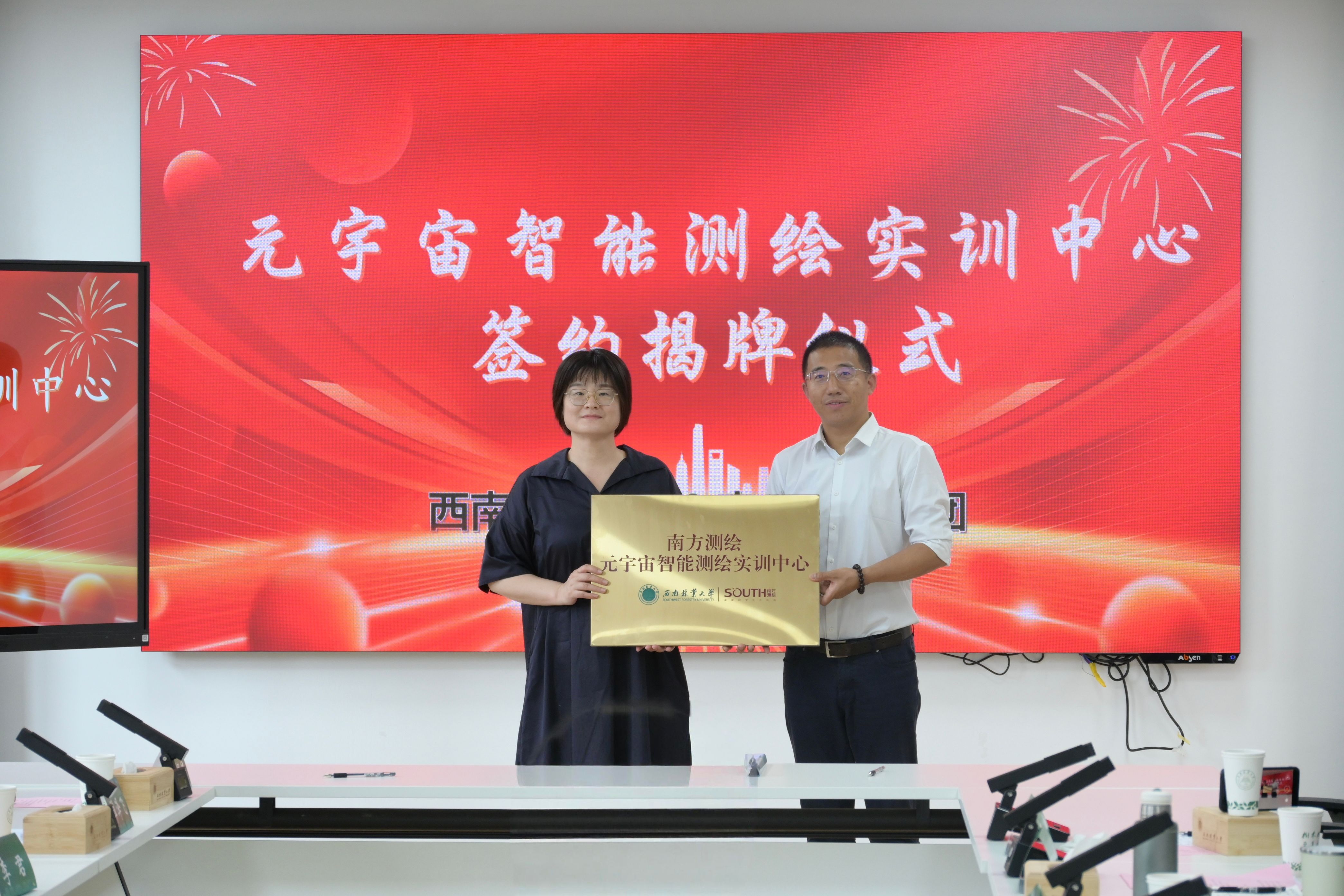 李君副书记在致辞中强调,共建实训中心是深化产教融合、响应国家教育数字化战略的关键举措。中心将整合元宇宙前沿技术与测绘学科特色,打造沉浸式实践平台,为培养服务林业信息化和时空信息产业的复合型人才提供强力支撑。郭宝宇副总裁现场演示了元宇宙智能实训平台,通过三维场景构建、实时数据可视化及虚拟仿真操作,生动展现平台如何革新传统测绘教学。孙微微经理与郭宝宇副总裁代表双方签约。仪式后,校企双方围绕课程开发与技术应用展开座谈。