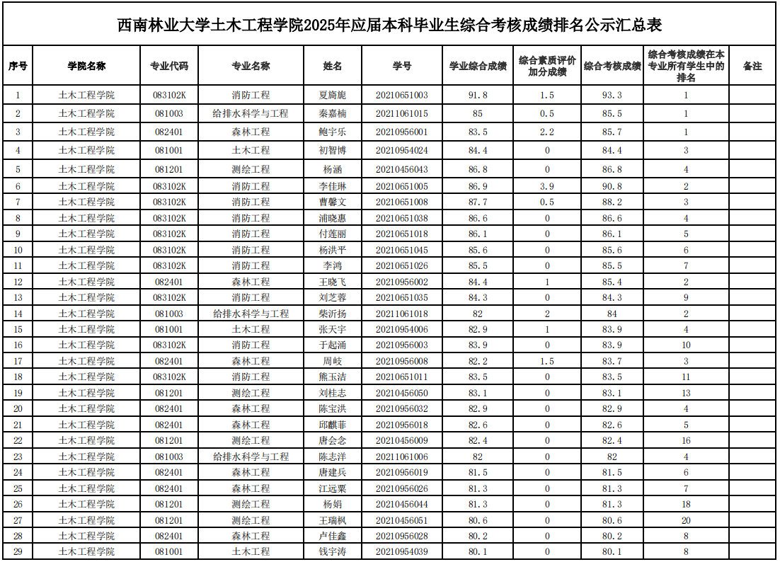 附件1:2025年应届本科毕业生综合考核成绩排名公示汇总表-来利国际旗舰厅